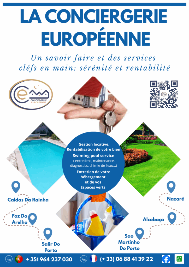 Fort de 30 années d’expérience dans le tourisme et les Services à la personne, nous avons créé et dirigeons « La Conciergerie Européenne ». Nos bureaux sont situés à Alcobaça, au cœur de la Côte d’Argent portugaise, et intervenons de Viera De Leiria (au Nord) jusqu’à Peniche (au sud).